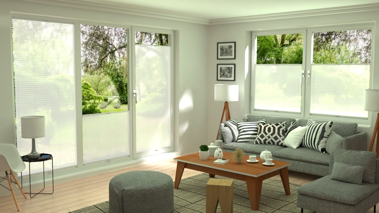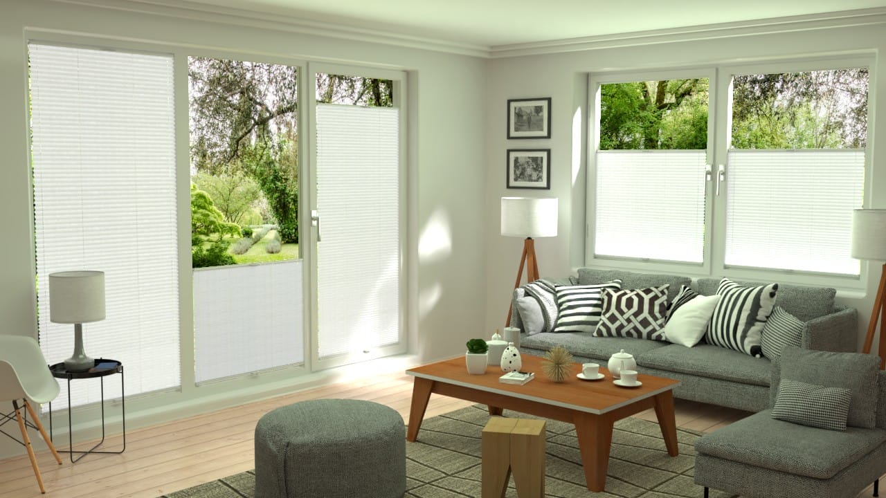Ein Terrassentür Sichtschutz lässt sich ideal mit einem Plissee realisieren – denn im Alltag bleibt der obere Teil an den meisten Tagen im Jahr geöffnet. Intuitiv möchten Sie hinausschauen, während der untere Teil geschlossen und gegen neugierige Blicke geschützt werden soll. Bei allen anderen Sichtschutzlösungen müssen Sie diese vollständig herunterlassen, um den unteren Bereich zu schließen. Dies ist der Hauptvorteil eines Plissees.