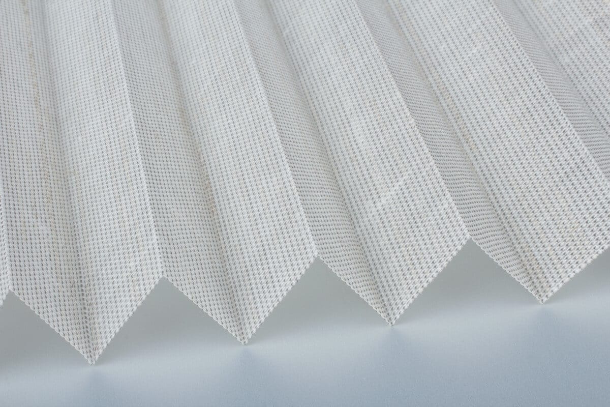 Ein transparenter Stoff mit waagerecht eingewebten, farbigen Fäden und weißer Grundstruktur. Wirkt sehr edel mit natürlichem und dezent meliertem Ton.