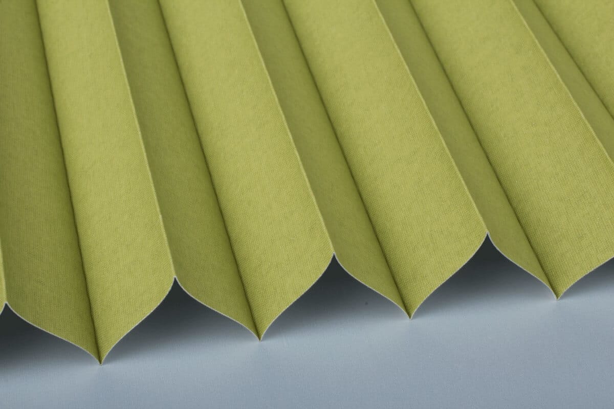 Ein fein gewebter Verdunkelungsstoff mit einer glatten, weiß-perlmutt glänzenden Rückseite, die bei allen Stoffen der Serie identisch ist.