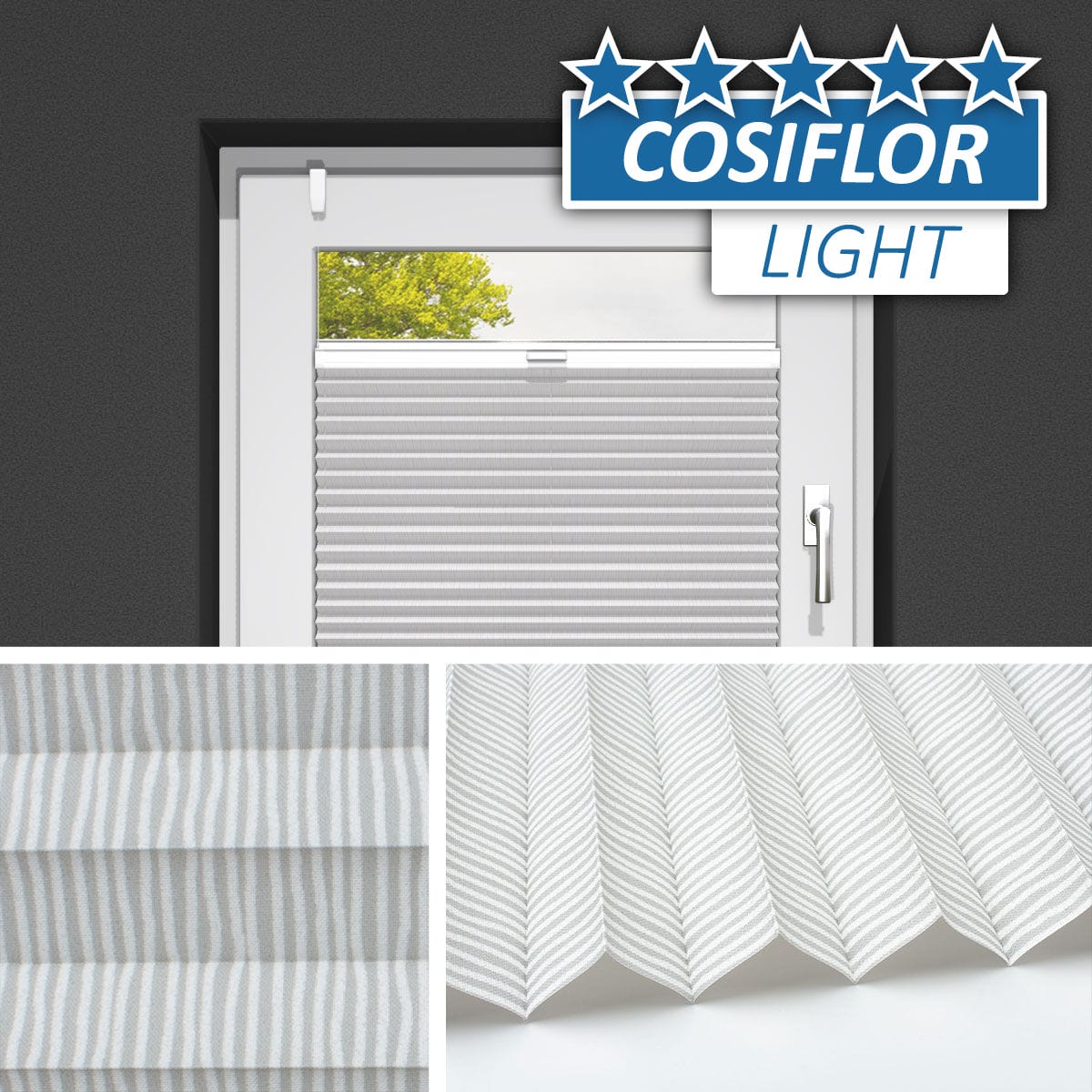 Ein blickdichter Stoff mit senkrechten, hellen Streifen, der für jeden Wohnbereich geeignet ist. Die Rückseite dieses Stoffes ist leicht glänzend. Hier wurde zwar keine Perlexbeschichtung verwendet, trotzdem ist durch diese Textur eine gute Sonnenreflektion gegeben.