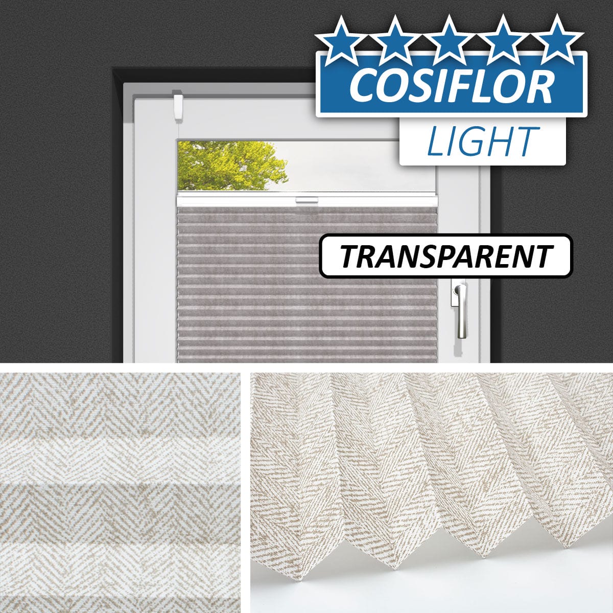 Transparenter Stoff mit aufgedrucktem Fischgrätenmuster. Diese verleiht dem Stoff aus einigen Metern Entfernung einen einzigartigen Charakter. Zudem zeichnet sich dieser Stoff durch eine sehr gute Faltenbildung aus.