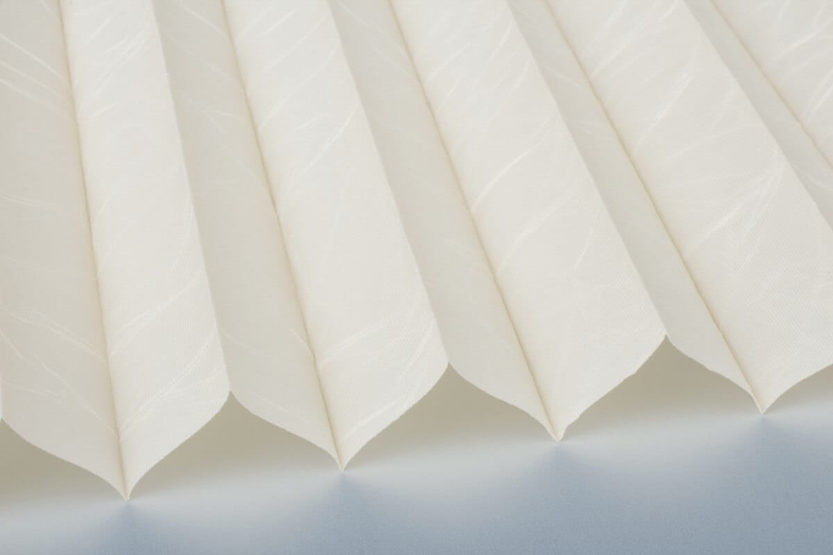 Seit Jahren einer der beliebtesten Plisseestoffe mit echter Knitterstruktur. Blickdichter Stoff mit Perlmuttbeschichtung auf der Rückseite, welche Sonnenlicht reflektiert und der Wärmeentwicklung vorbeugt.