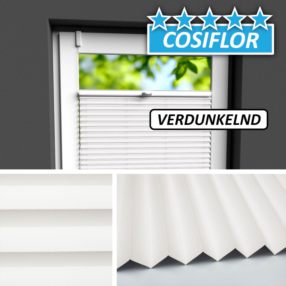 Die zumeist helle Rückseite dieser Verdunkelungsstoffe reflektiert tagsüber das Sonnenlicht um der Erwärmung des Schlafraumes vorzubeugen. Hinweis: Durch die Schnurstanzungen und an den Seiten kommt immer etwas Licht hindurch. Ein Plissee ist nicht geeignet für eine 100%ige Verdunkelung.
