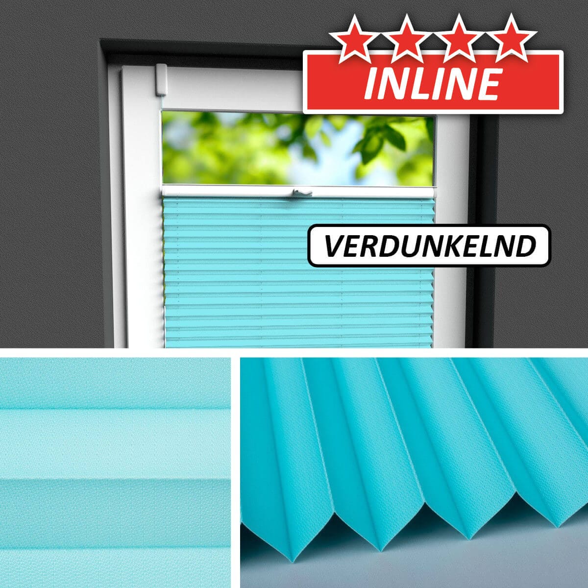 Ein fester, verdunkelnder Plisseestoff mit identischer Vorder- wie Rückseite.