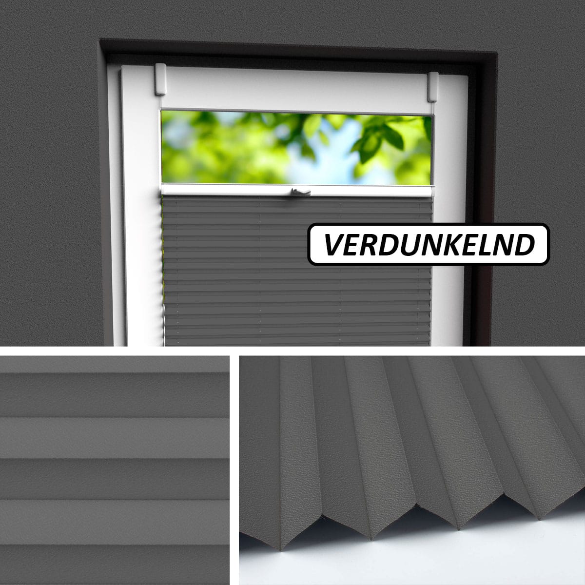 Info: Empfohlene Befestigung direkt vor der Scheibe. Unauffälligste Befestigungsart. Plissee und Fenster bilden eine Einheit wie aus einem Guss.