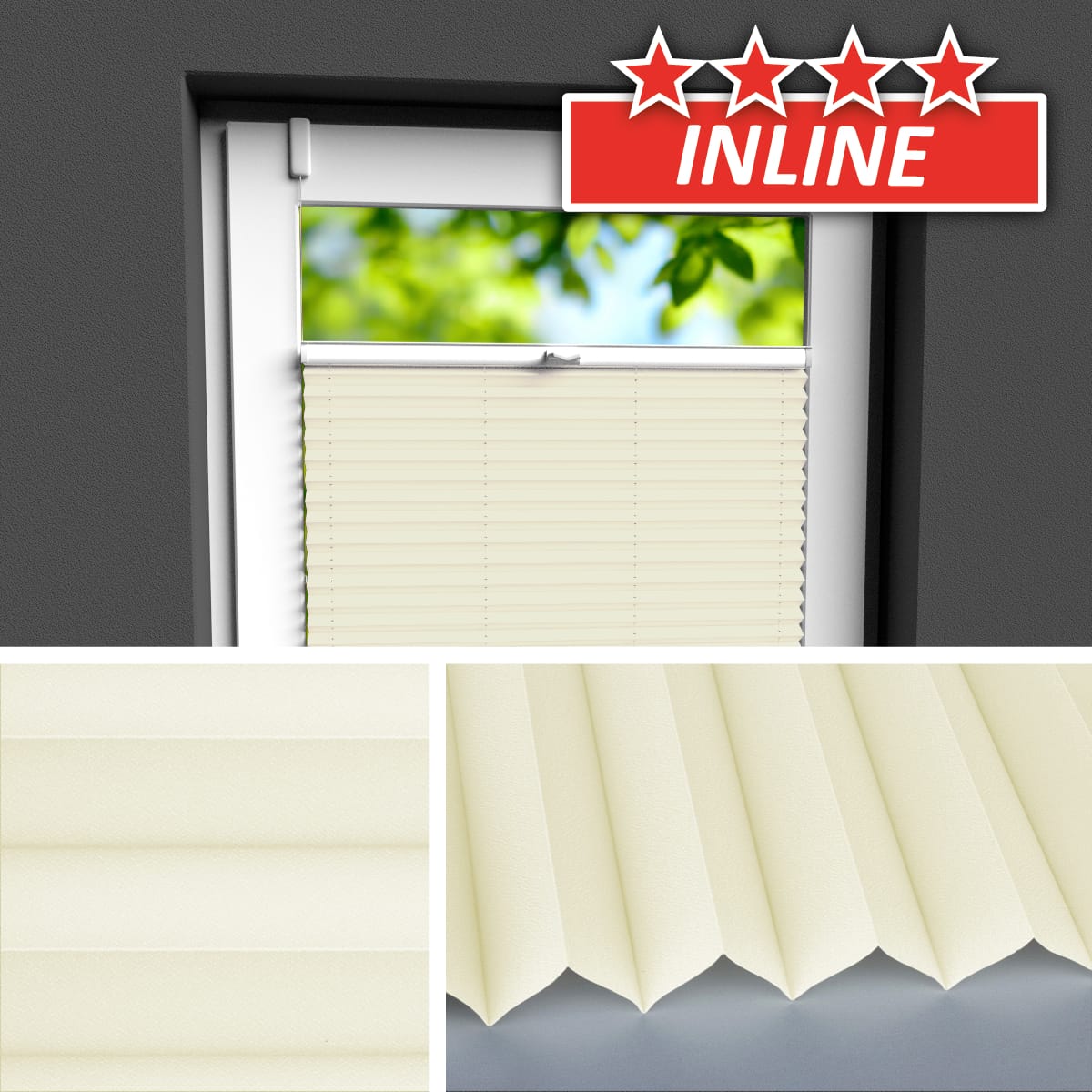 Bei Wabenstoffen empfehlen wir einen Mindestabstand von 5mm zwischen Scheibe und Stoff. Halten Sie hierzu eine Mindestfalztiefe von 19mm ein. Bitte beachten Sie auch die Herstellerangaben Ihres Fensters.