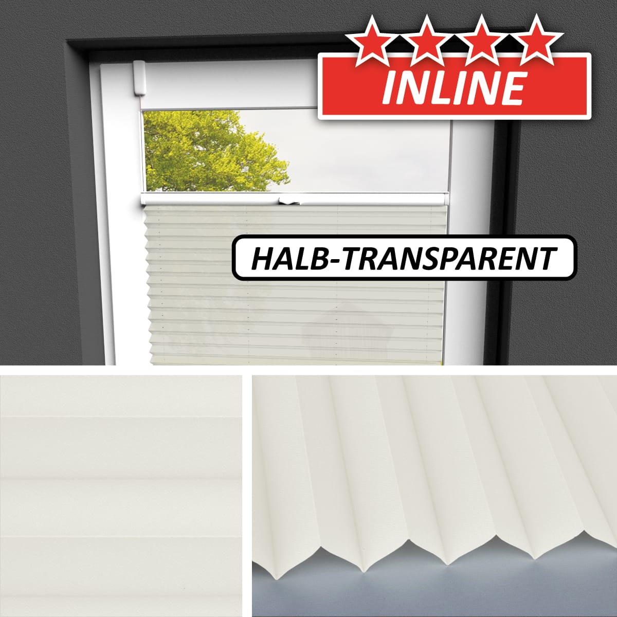 Bei Wabenstoffen empfehlen wir einen Mindestabstand von 5mm zwischen Scheibe und Stoff. Halten Sie hierzu eine Mindestfalztiefe von 19mm ein. Bitte beachten Sie auch die Herstellerangaben Ihres Fensters.