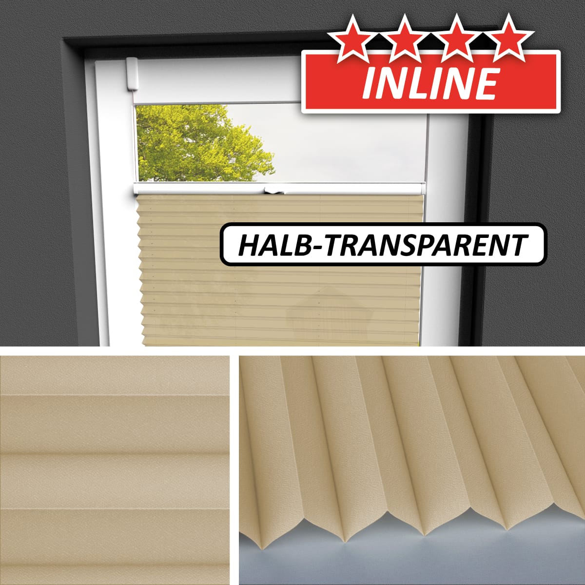 Bei Wabenstoffen empfehlen wir einen Mindestabstand von 5mm zwischen Scheibe und Stoff. Halten Sie hierzu eine Mindestfalztiefe von 19mm ein. Bitte beachten Sie auch die Herstellerangaben Ihres Fensters.