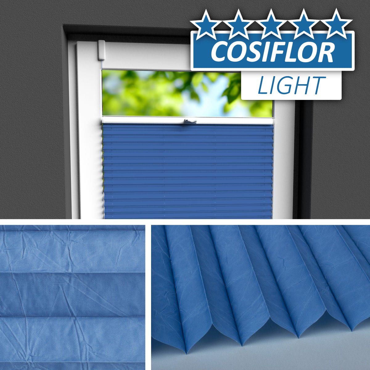 Seit Jahren einer der beliebtesten Plisseestoffe mit echter Knitterstruktur. Blickdichter Stoff mit Perlmuttbeschichtung auf der Rückseite, welche Sonnenlicht reflektiert und der Wärmeentwicklung vorbeugt.