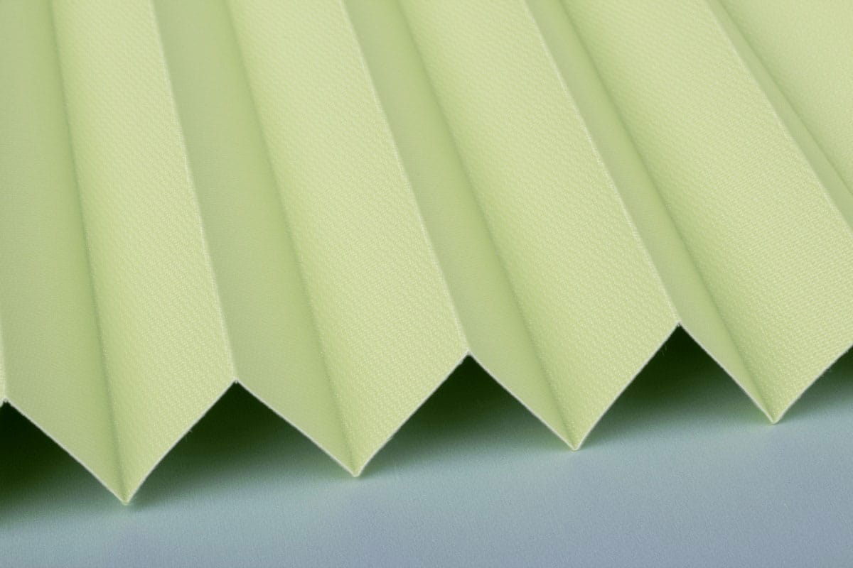 Ein fester, verdunkelnder Plisseestoff mit identischer Vorder- wie Rückseite.