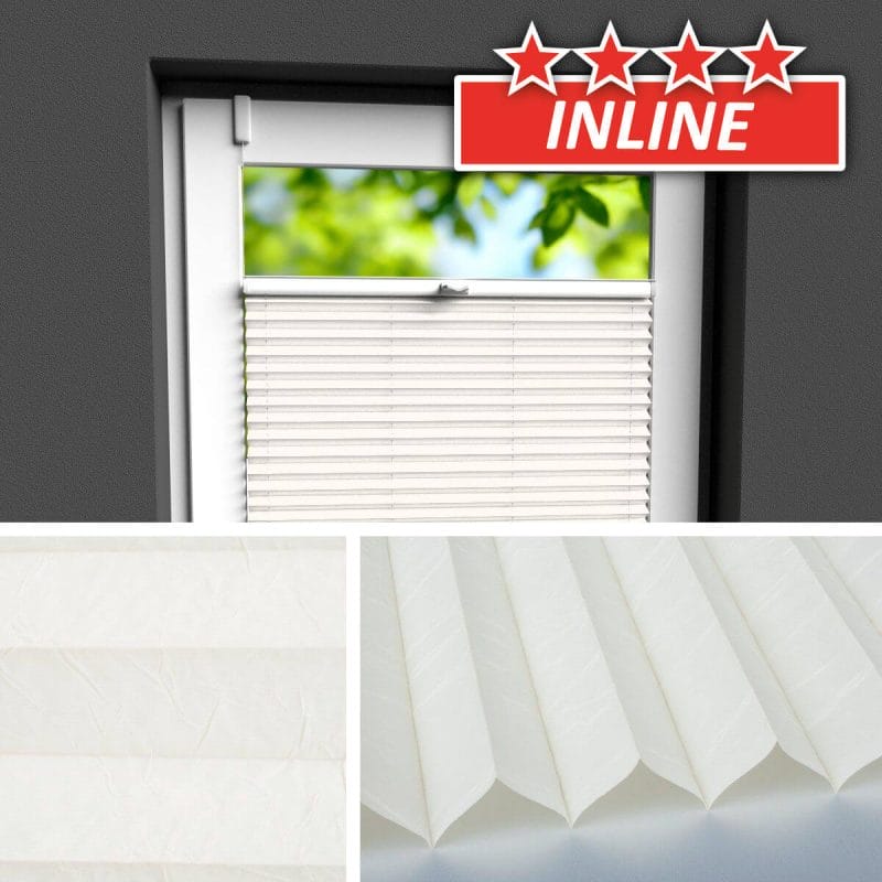 Seit Jahren einer der beliebtesten Plisseestoffe mit echter Knitterstruktur. Blickdichter Stoff mit Perlmuttbeschichtung auf der Rückseite, welche Sonnenlicht reflektiert und der Wärmeentwicklung vorbeugt.