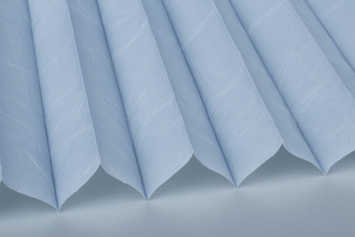 Seit Jahren einer der beliebtesten Plisseestoffe mit echter Knitterstruktur. Blickdichter Stoff mit Perlmuttbeschichtung auf der Rückseite, welche Sonnenlicht reflektiert und der Wärmeentwicklung vorbeugt.