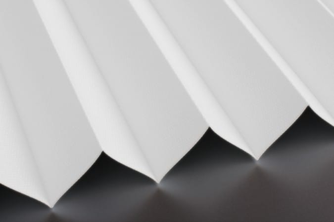 Ein Creppstoff mit glatter Webstrukturals Verdunkelungsstoff. Durch die helle Außenschicht reflektiert er viel Sonnenlicht, was der Wärmeentwicklung vorbeugt. Sehr gut geeignet für Schlafräume.
