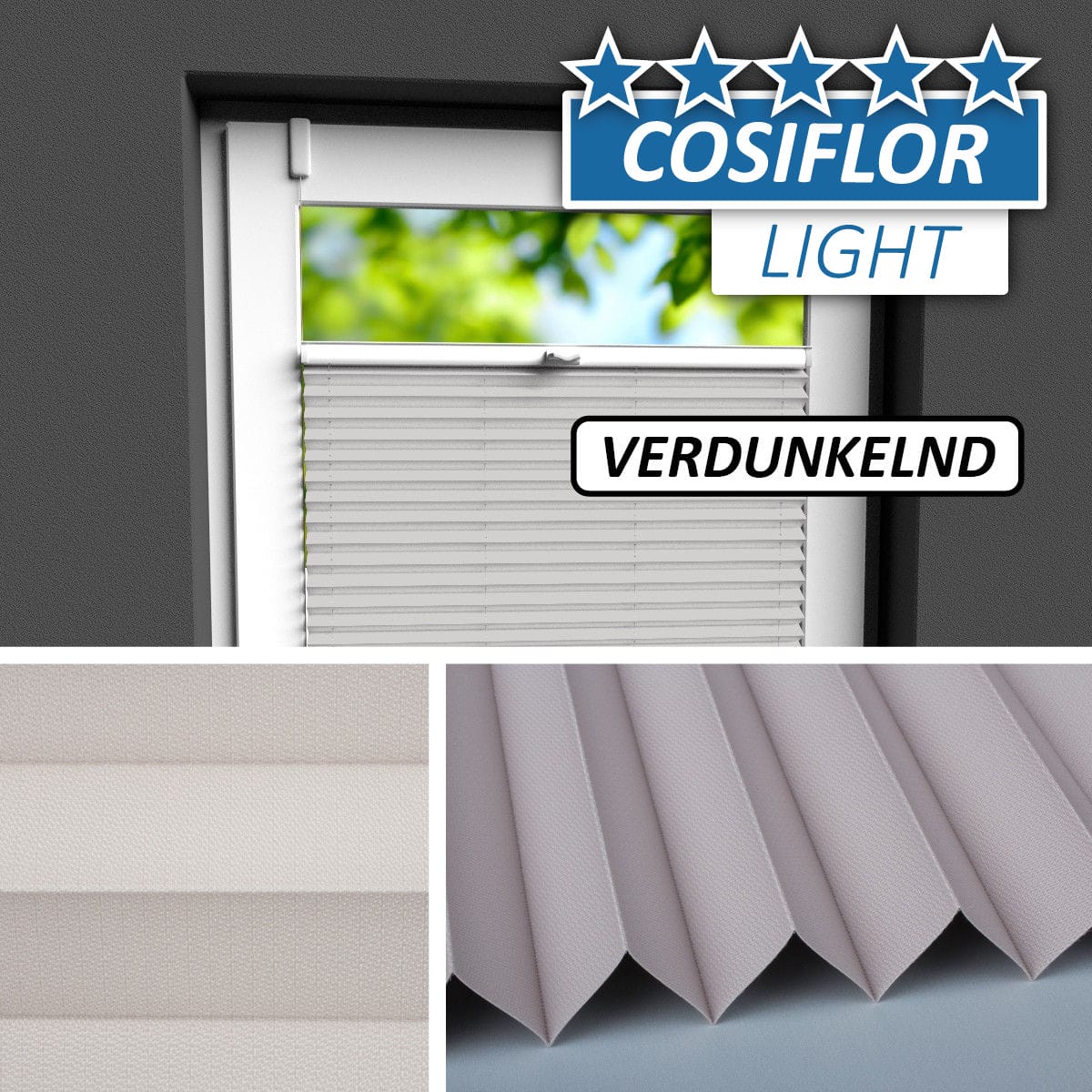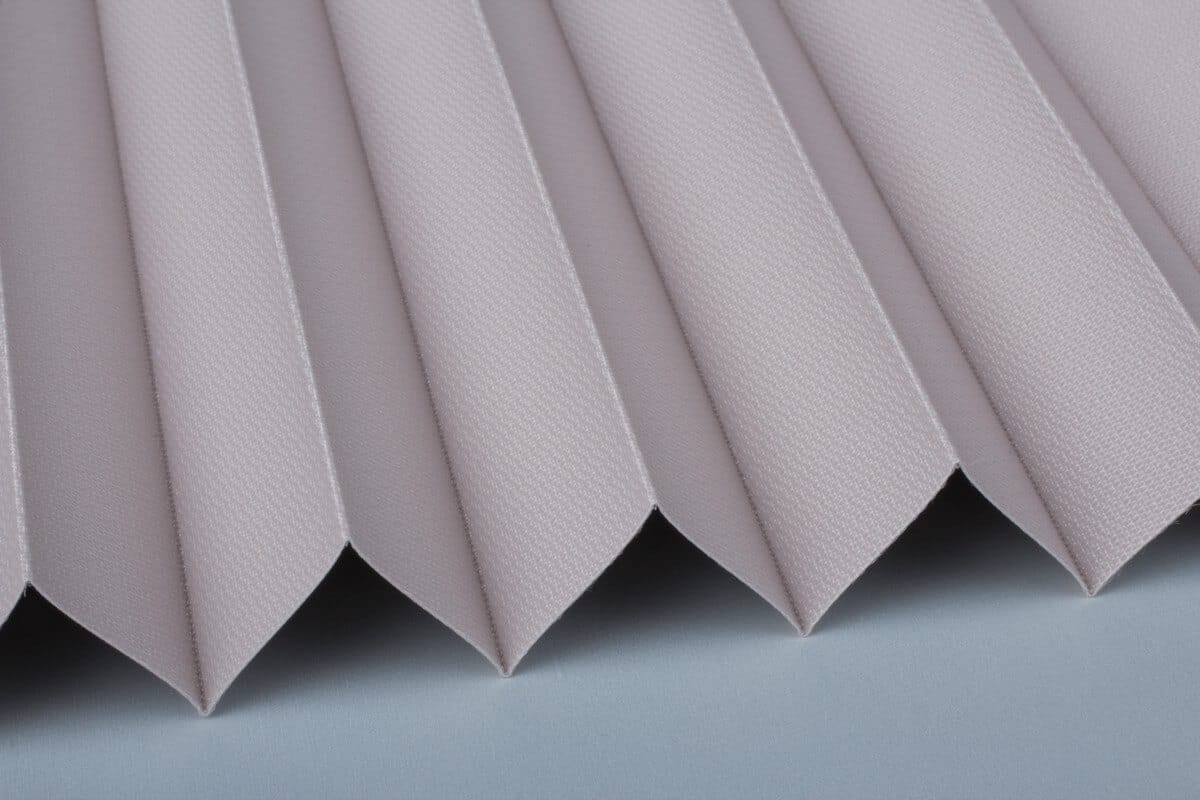 Ein fester, verdunkelnder Plisseestoff mit identischer Vorder- wie Rückseite.