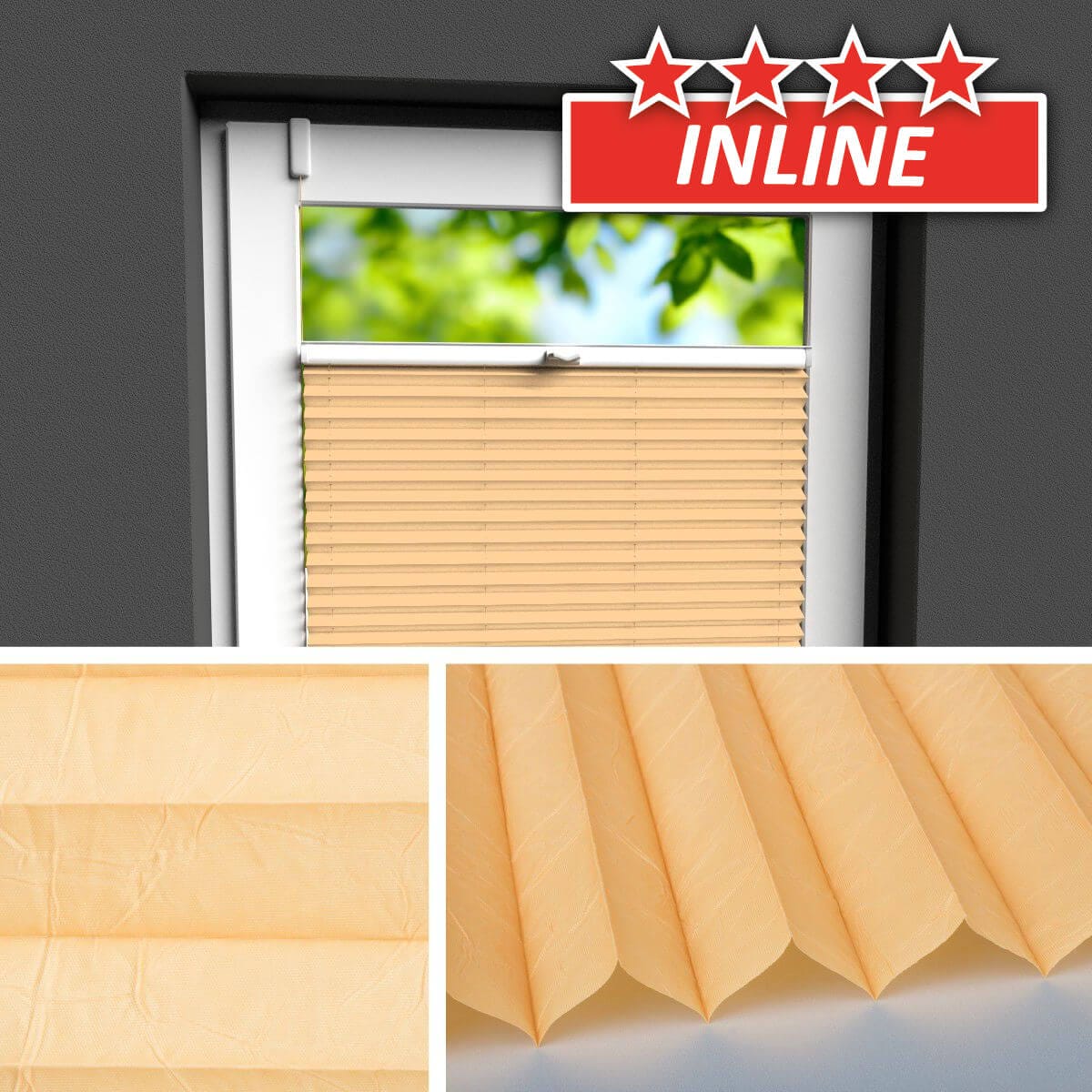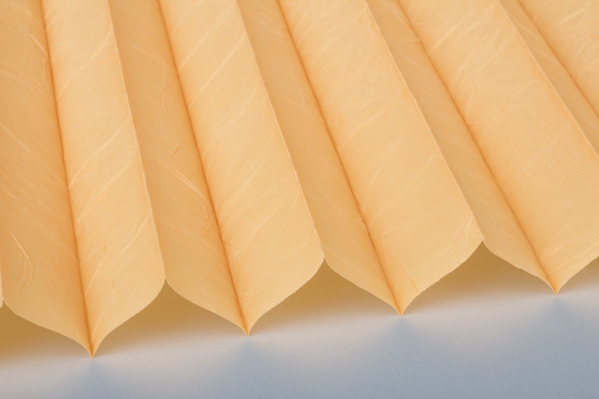 Seit Jahren einer der beliebtesten Plisseestoffe mit echter Knitterstruktur. Blickdichter Stoff mit Perlmuttbeschichtung auf der Rückseite, welche Sonnenlicht reflektiert und der Wärmeentwicklung vorbeugt.