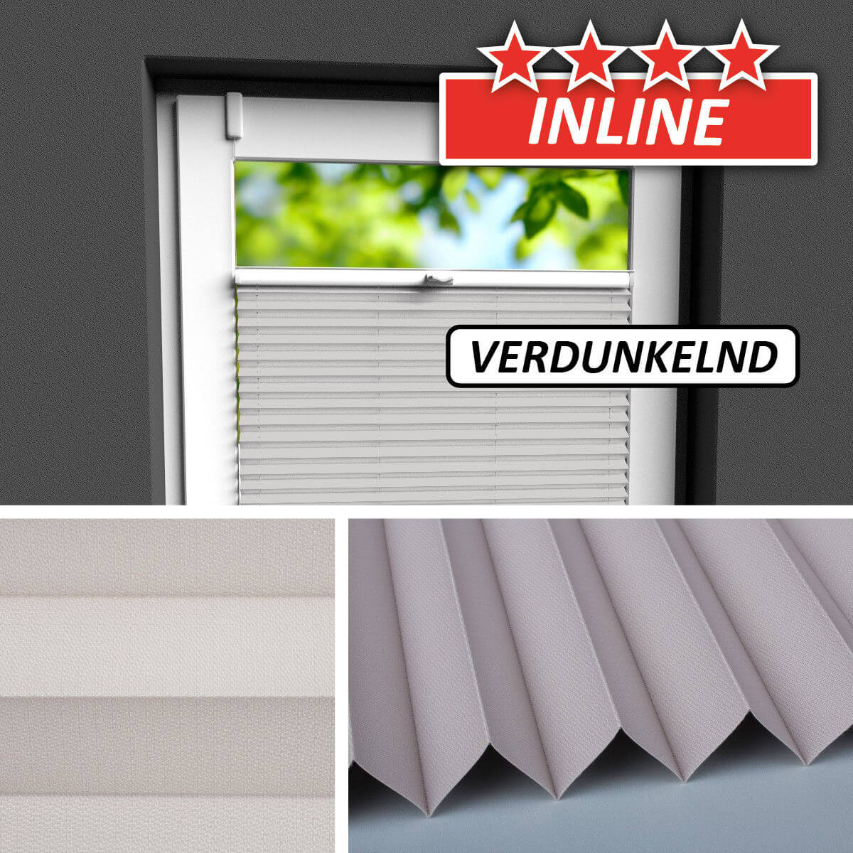 Ein fester, verdunkelnder Plisseestoff mit identischer Vorder- wie Rückseite.