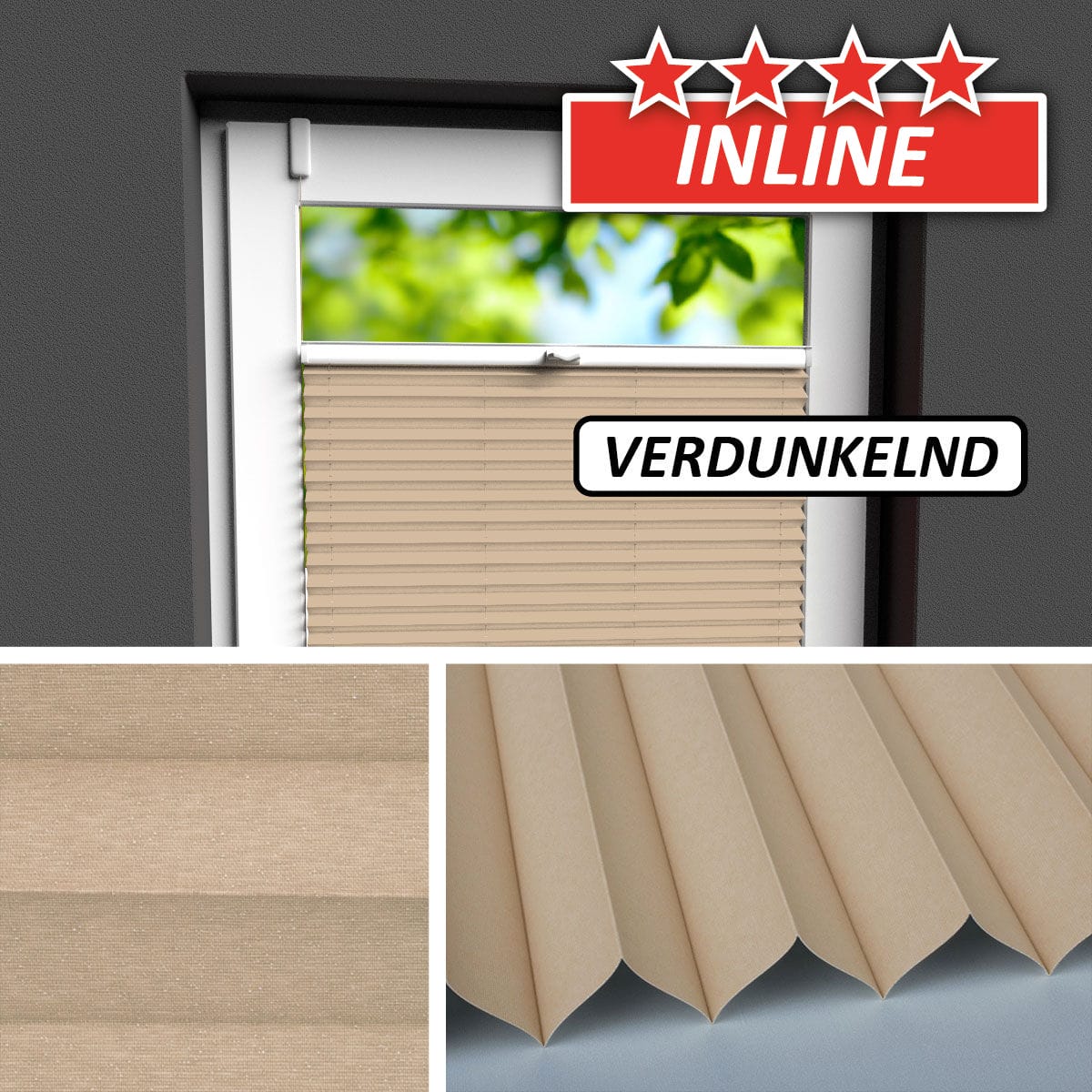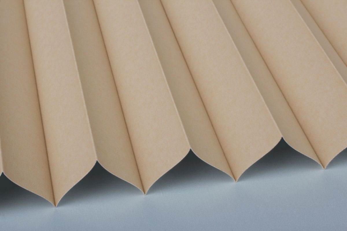 Ein fein gewebter Verdunkelungsstoff mit einer glatten, weiß-perlmutt glänzenden Rückseite, die bei allen Stoffen der Serie identisch ist.