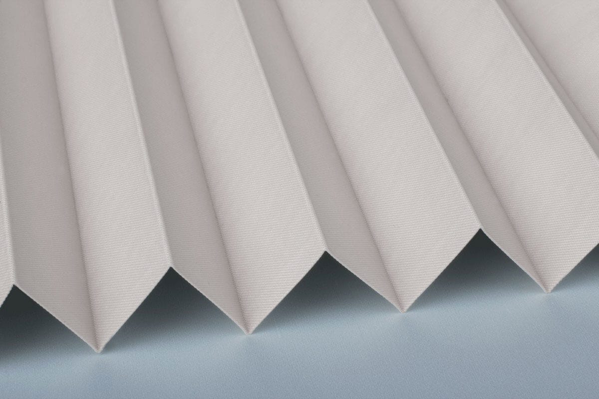 Ein fein gewebter Verdunkelungsstoff mit einer farbigen Innen- und einer weißen Rückseite, welche gut das Sonnenlicht reflektiert.