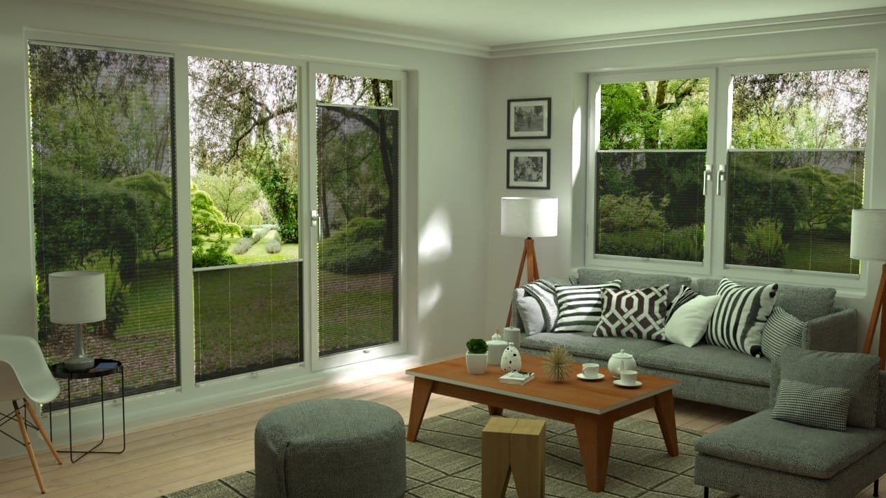 Info: Empfohlene Befestigung direkt vor der Scheibe. Unauffälligste Befestigungsart. Plissee und Fenster bilden eine Einheit wie aus einem Guss.
