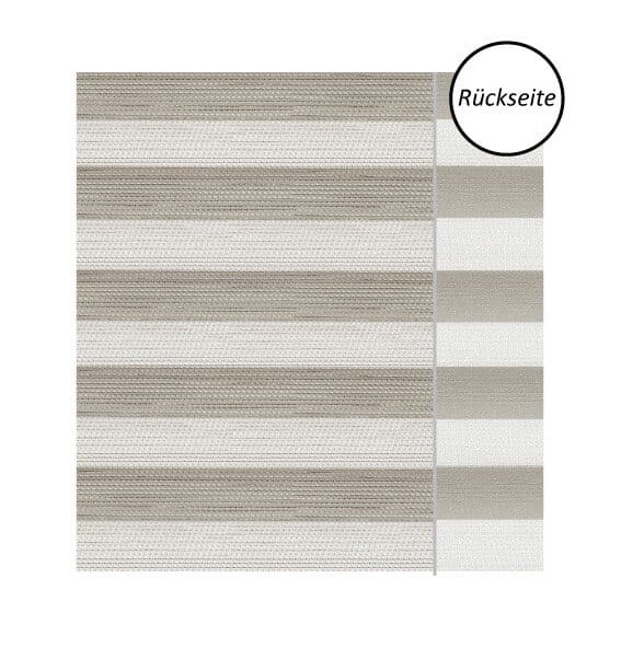 Ein blickdichter mit melierten Fäden gewebter Stoff mit dezenter Farbgebung. Mit Sonnenlicht reflektierender Perlmuttbeschichtung auf der Rückseite.
