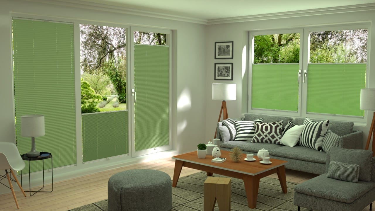 Einfarbige, blickdichte Crepp- und Webstoffe mit glatter Webstruktur und rückseitiger Perlmuttbeschichtung zur verbesserten Reflektion des Sonnenlichtes. Guter Sichtschutz für alle Bereiche.