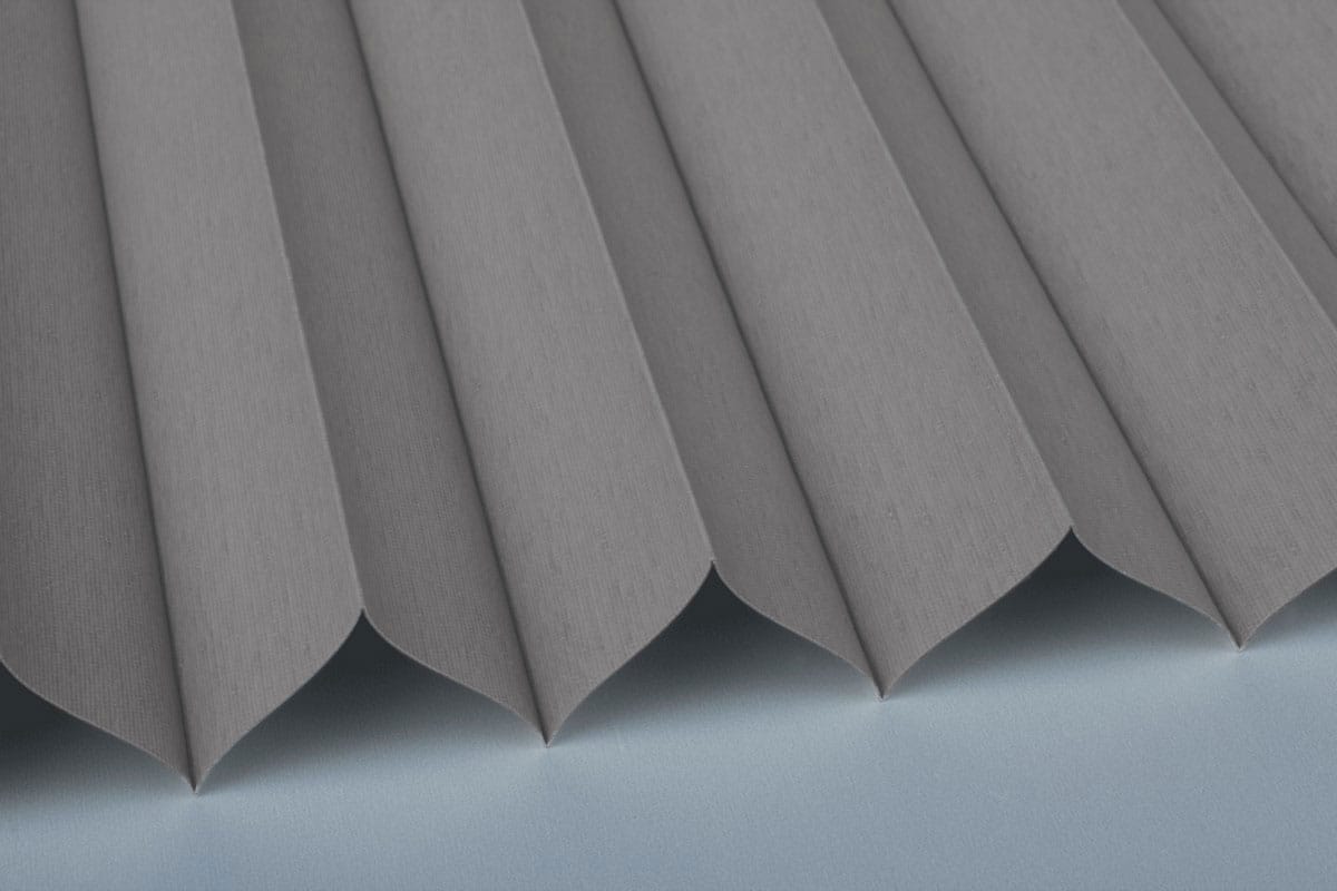 Ein fein gewebter Verdunkelungsstoff mit einer glatten, weiß-perlmutt glänzenden Rückseite, die bei allen Stoffen der Serie identisch ist.