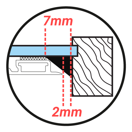 Achtung: Ist die Dichtung Ihres Fensters breiter als 5mm? Dann besteht die Gefahr der Kollision mit der Schiene, die auf der Scheibe verklebt wird.