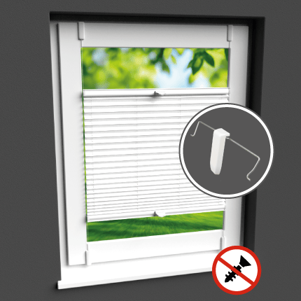 Der Plissee-Point-Fix wird auf der Rahmenkante des Fensters/Tür verklemmt. Die Montage ist nur innerhalb einer Rahmenstärke von 15-19 mm* möglich.